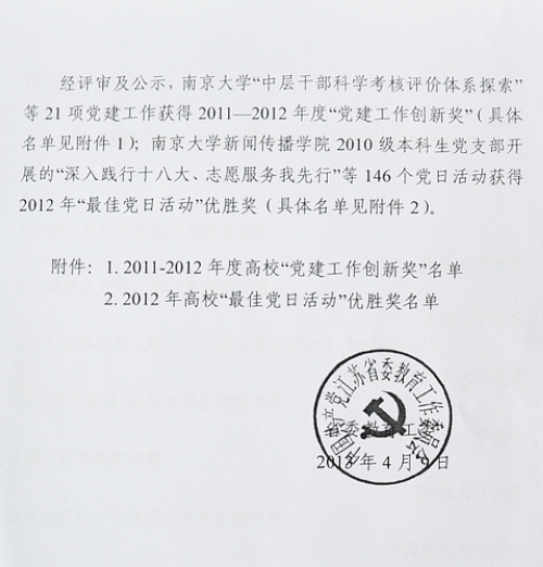 日前,江苏省委教育工委公布了江苏高校2012年最佳党日活动优胜奖的评选结果。sunbet申搏机电工程学院学工党支部开展的“创建节约型泰师校园,我为泰师做贡献”党日活动,获得2012年“最佳党日活动”优胜奖。 (钱成)