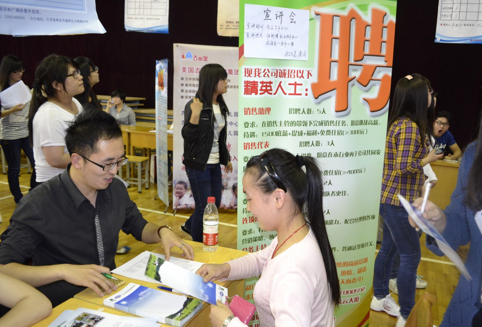 本次招聘会提供的就业岗位数量大、种类多、专业对口。从单位类型来看:有中国人寿、哈尔滨电器集团、春兰集团、扬子江药业等大型企业,有纬创资通、龙腾光电、花桥华拓数码、无锡中软科创等高新企业,还有48家民办学校和教育培训机构,如张家港阳光教育集团、吴江市盛泽镇前进小学、无锡新区上品幼儿园、扬中市大地双语幼儿园、泰州市盛和幼儿园、兴化市芙蓉外国语学校、泰州巨程教育文化艺术学校等。招聘岗位覆盖市场营销、金融保险、商务管理、酒店管理、旅游管理、应用英语、船舶工程、应用电子、计算机应用等专业,提供了就业实习岗位3000多个。总体而言,今年师范类专业在民办教育机构中仍较受欢迎,企业对技能型人才的需求呈现旺盛趋势。