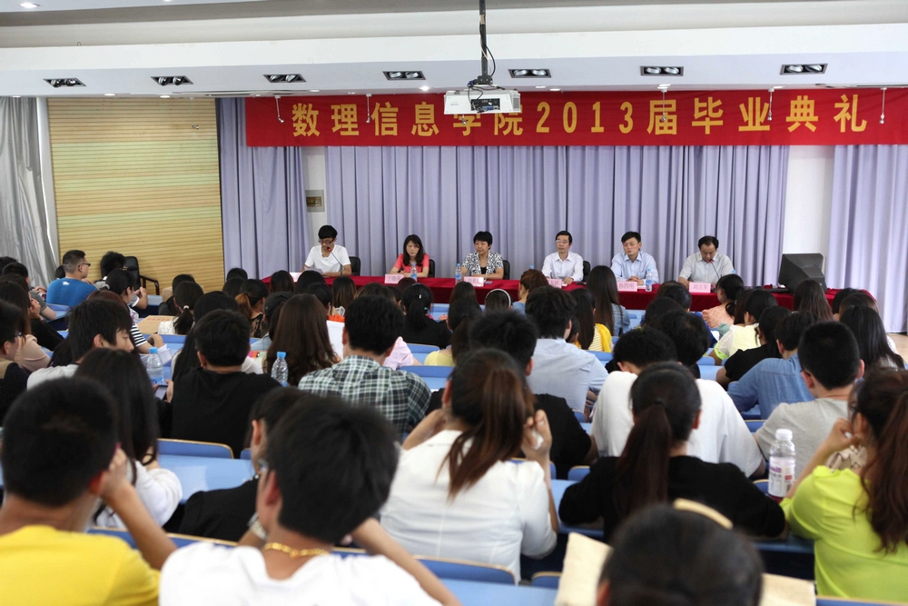 5月24日下午,数理信息学院在春晖阶梯教室隆重举行了2013届毕业典礼。校党委委员、副校长邓友祥出席典礼,院长孙四明、院党总支书记刘素红、副院长刘立军、书记助理于晓萍、毕业班班主任和全体毕业生参加了典礼。典礼由刘立军主持。
