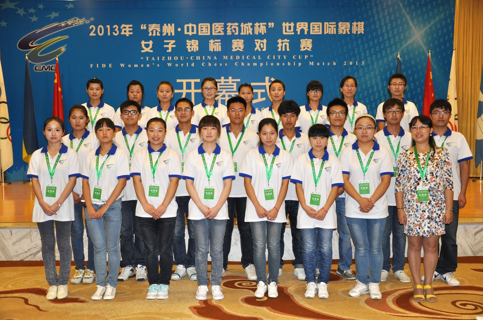 本次大赛由世界国际象棋联合会、国家体育总局棋牌运动管理中心、江苏省体育局、泰州市人民政府主办。来自我院外国语学院30名志愿者,以扎实的外语功底、过硬的综合素质和饱满的服务精神,出色地完成了本次开幕式的志愿者工作。他们主要负责开幕式现场、场外引导礼仪和陪同参观考察等志愿服务。