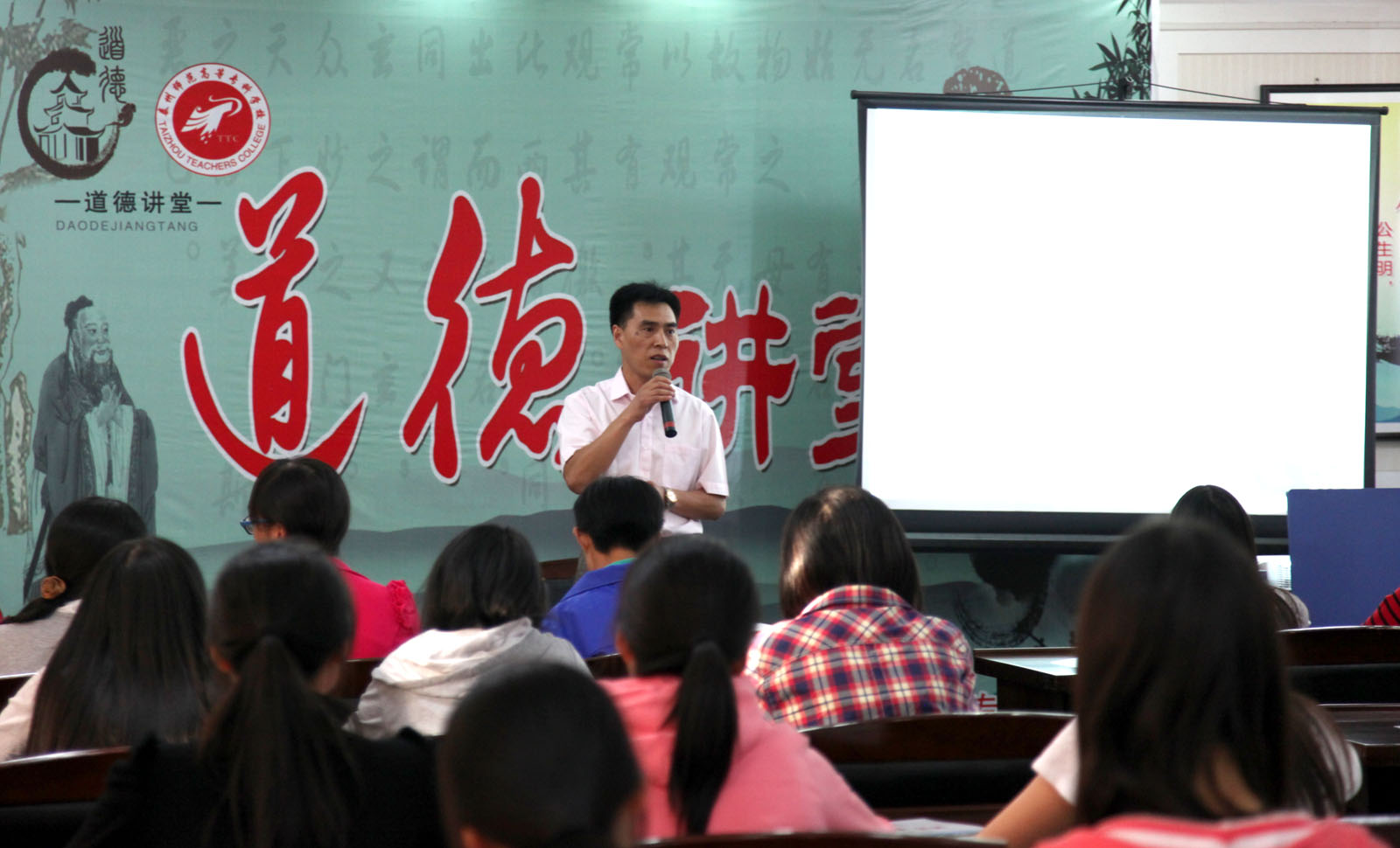 本期道德讲堂的主题是“自立自强,为人师表”。讲堂开始,主持人三问“心诚不诚?情真不真?行正不正?”,引起了所有人的深刻反思。