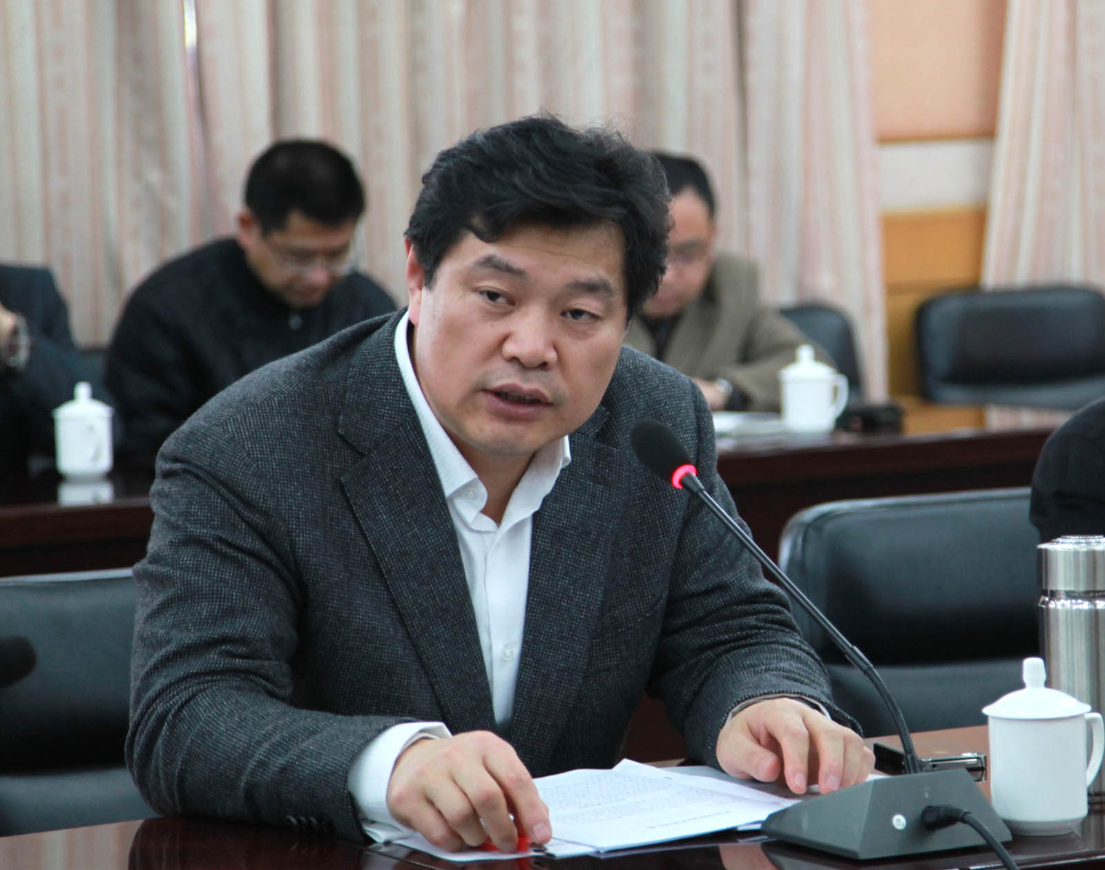 副院长田浩、王美林和张曙光参加情况汇报会。 (钱成)