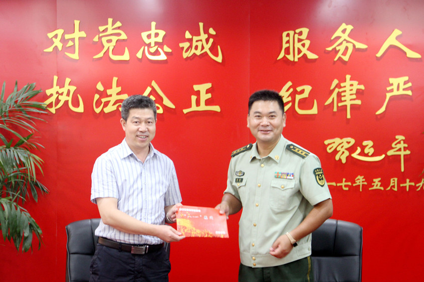 为庆祝中国人民解放军建军90周年,扎实开展sunbet申搏拥军优属拥政爱民活动,“八一”前夕,7月31日上午,校党委副书记、副校长田浩率校人武部负责人员前往武警泰州消防大队进行拥军慰问。