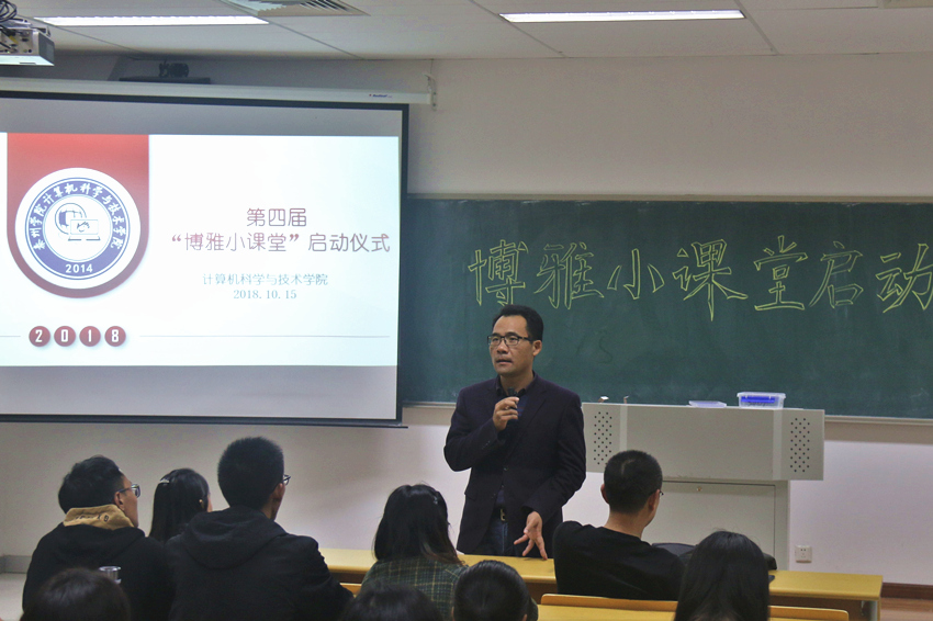 为了深入学习和贯彻习近平新时代中国特色社会主义思想和党的十九大精神,全面贯彻教育部党组书记、部长陈宝生在全国高等学校本科教育工作会议上重要讲话精神,10月15日晚,计算机科学与技术学院在教学楼A3407进行了以“四个回归”和“庆祝改革开放40周年”为主题的2018级新生博雅小课堂启动仪式。计科院党政领导、学工人员、辅导员、班主任及18届新生代表参加了本次活动。