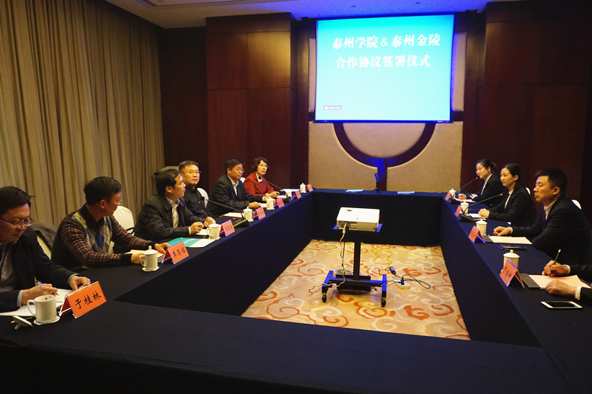 10月31日下午,校领导赵茂程、周建超带领科研处、校企合作办公室、经济与管理学院负责人赴泰州国际金陵大酒店调研并签署合作协议。