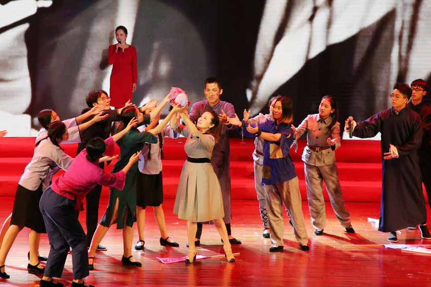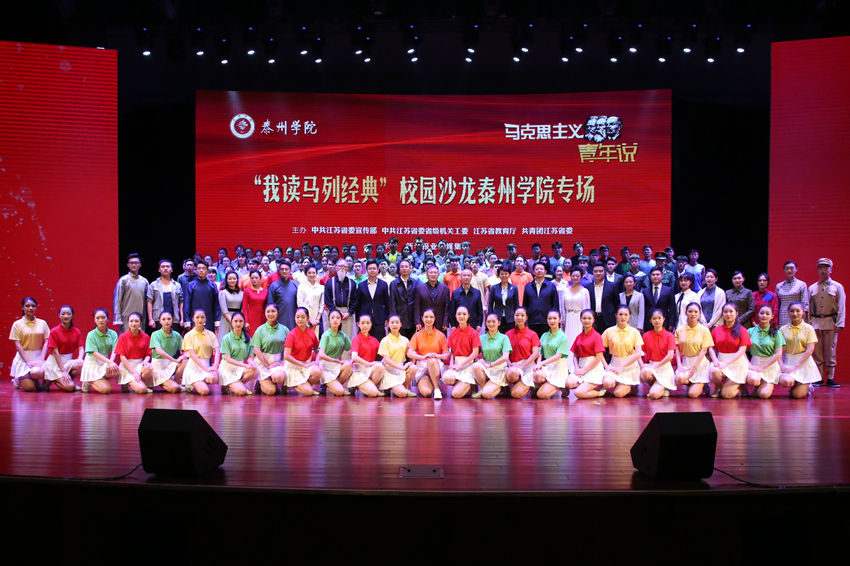 整场活动分为“马列光辉照我心”“唱支心曲给党听”两个篇章,师生共同演绎了《我们的宣言》《生命的华章》《祖国啊,我亲爱的祖国》《月光下的古银杏》《思念是一条玉带河》《请给我留一个位置》等情景诗画,从多个途径寻找问题的答案,在经典诵读中感悟马克思主义的理论力量,在中国共产党建设祖国的历史诗篇中感受马克思主义的历史价值,在优秀传统文化中寻找马克思主义中国化的文脉根基,在泰州籍优秀共产党员、杰出校友的事迹中领会马克思主义者的光荣和梦想,在“请给我预留一个位置”的宣言中发出勇担时代使命的青春强音……只要学习和思考没有停止,对马克思主义的时代接力就有了不竭的力量源泉。