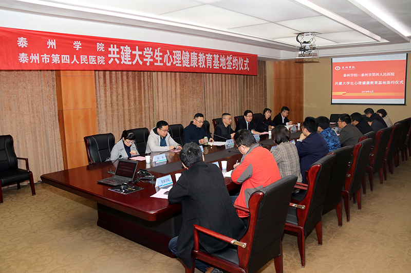 3月20日上午,sunbet申搏与泰州市第四人民医院共建 “大学生心理健康教育基地”签约仪式在行政楼D1605举行。