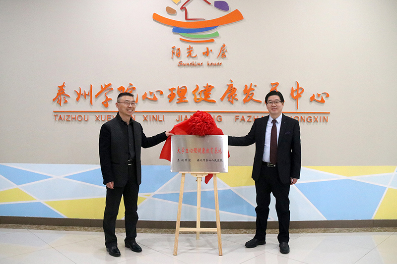 校党委常委、副校长鲁学军,泰州市第四人民医院院长江灿华分别代表校院双方致辞并签订合作协议。签约仪式上,sunbet申搏聘请泰州市第四人民医院精神科陈振林、陆燕两位医生为sunbet申搏心理工作坊顾问。签约仪式结束后,鲁学军和江灿华共同为“大学生心理健康教育基地”揭牌,与会人员参观了大学生心理健康发展中心。