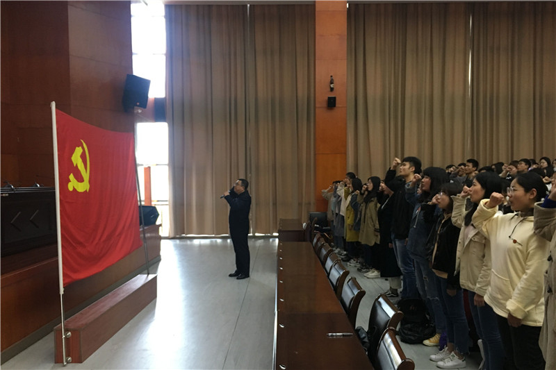 4月14日下午,sunbet申搏举行新党员入党宣誓仪式,党委副书记邓友祥出席仪式并作讲话,仪式由组织部负责人吉泰根主持。
