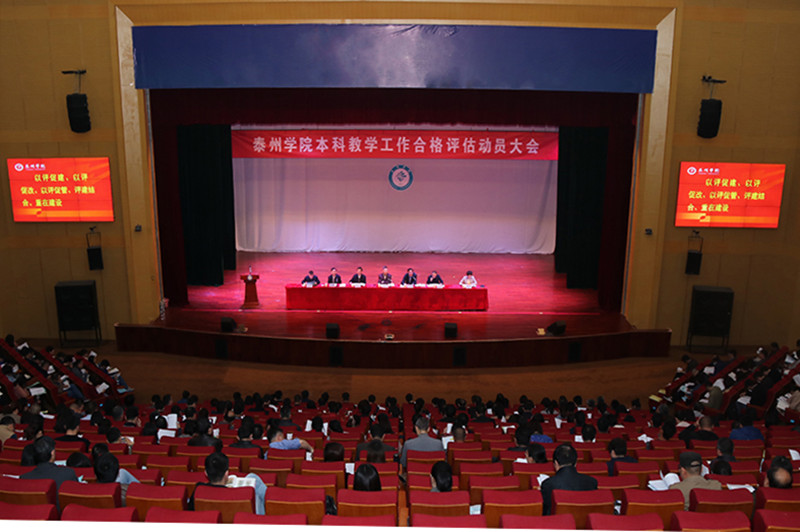 4月17日(周三)下午,学校在大学生活动中心召开迎接教育部本科教学工作合格评估动员大会。全体在泰校领导出席会议,在编在岗教职员工共400余人参加会议。校党委书记赵茂程作总结讲话,校长、校党委副书记徐向明作动员报告。会议由副校长周建超主持。