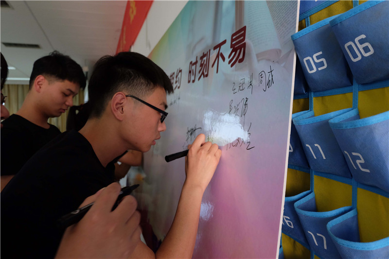 此次班会形式多样、内容丰富,同学们用“博雅微课堂”、诚信故事分享、小品、合唱、视频学习、经典诵读、诚信宣誓等形式诠释了诚信主题。与会的老师和同学们都在诚信墙上郑重签下了自己的名字。