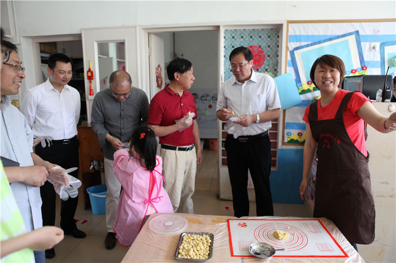 徐向明一行为孩子们送去节日的祝福及图书、积木、地球仪等礼物,观看大班“集体生日会”和中、小班“大手牵小手异龄同乐会”,品尝孩子们做的香甜饼干,欣赏《龙腾盛世》、《中国功夫》、《啦啦操》等精彩节目。