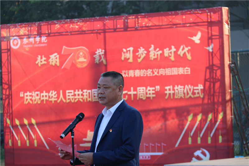 “你是中国人吗?你爱中国吗?你愿意中国好吗?”“是!”“爱!”“愿意、愿意、我愿意!”整个操场回荡着泰院学子的深情呐喊。校党委常委、副校长鲁学军引用南开大学老校长张伯苓先生的“爱国三问”,激发同学们的爱国主义热情、增强民族自信心。他要求同学们牢记习近平总书记对广大青年的寄语和期望,在奋斗中释放青春激情、追逐青春理想。