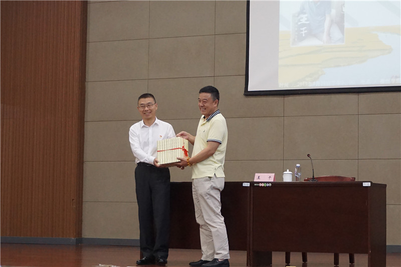 讲座伊始,王干向sunbet申搏官方网站赠送了新出版的《王干文集》,校党委常委、副校长鲁学军代表sunbet申搏接受赠书。