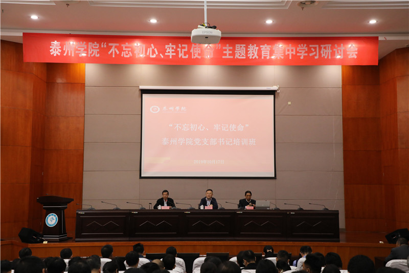 10月17日,学校党委举办“不忘初心、牢记使命”主题教育支部书记培训班,对全校党支部书记开展集中轮训。全校各二级党组织书记、副书记、基层党支部书记共计80余人参加培训。校党委书记赵茂程出席会议并作动员讲话,党委副书记邓友祥主持培训会,原泰州师专党委书记徐金城教授为培训班做讲座。