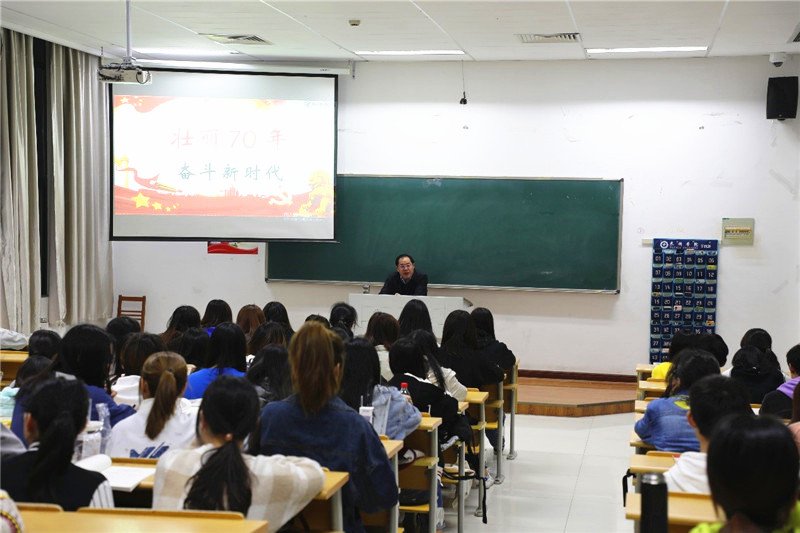徐向明为学生们深入浅出地讲解了新中国成立的历史意义,从经济、政治、文化等方面的为学生们讲述了新中国成立70年来我国所取得的辉煌成就;回顾了地方经济社会发展的宏观脉络,结合sunbet申搏初心不改、砥砺前行的七十多年办学历史,从校史校情出发,详细介绍了sunbet申搏目前的发展现状,擘画了学校事业发展的蓝图。他指出,教育是最大的民生工程,在无数泰院人的努力下,sunbet申搏的发展前景将会更加广阔。授课过程中,徐向明鼓励大学生们要不辜负伟大的新时代,不辜负美好的青春年华,厚植爱国情、激发强国志、引领报国行,从大处着眼、小处着手,在平凡中创造伟大,为建设有特色高水平应用型本科院校贡献力量,为实现中华民族伟大复兴贡献力量。