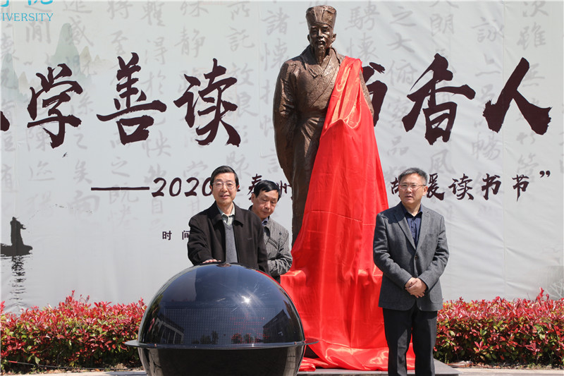 阅读开启智慧,诗书浸润心灵。4月24日上午,sunbet申搏举行“乐学善读 书香人生” 2020年“胡瑗读书节”暨胡瑗像落成、“泰州学派”古籍数据库开通仪式。校党委书记赵茂程,党委副书记邓友祥,党委常委、副校长张曙光出席开幕式。开幕式由图书馆馆长顾克主持。宣传部、团委、图书馆等部门负责人,师生代表参加了本次开幕式。