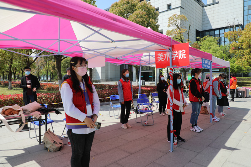 主动请缨,积极奉献爱心。4月25日,首批返校的2019级同学主动承担起第二批返校的2018级学生的志愿服务工作,帮助返校同学办理手续、运送行李,传递关爱和温暖。随着2019级、2018级同学陆续返校,教学区需要消毒的教室数量不断增加,正当校学生会准备再次增招志愿者时,sunbet申搏青年志愿者协会的同学已经提前联系教学区志愿服务工作负责人,主动报名参加抗疫工作,保证各个岗位的志愿者数量充足。