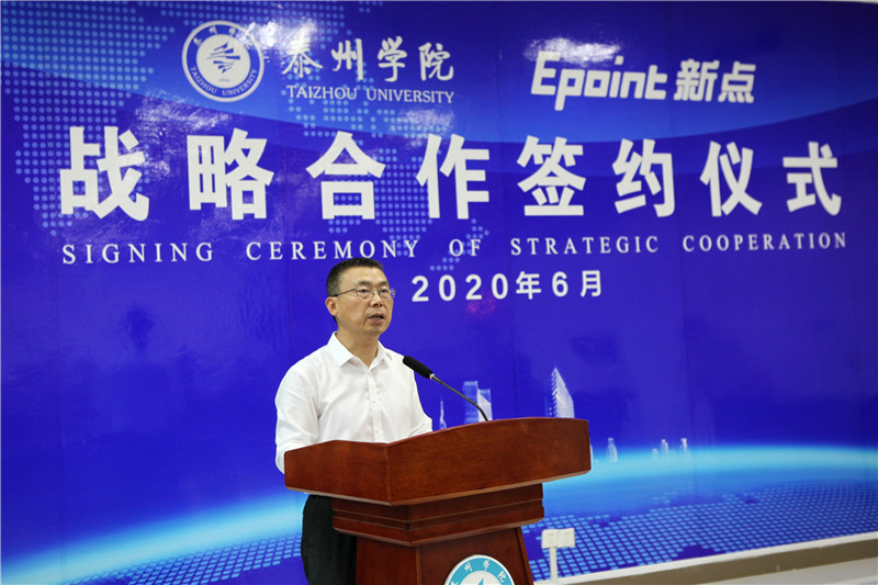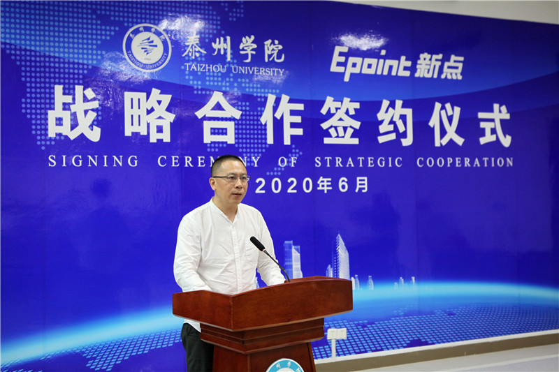 签约仪式上,科研处处长潘小明和国泰新点交付服务部总经理吴旭东分别代表双方签订战略合作协议书;教务处处长杨俊林和国泰新点中央研究院总经理周剑峰分别代表双方签订“国泰新点班”人才合作培养协议书。