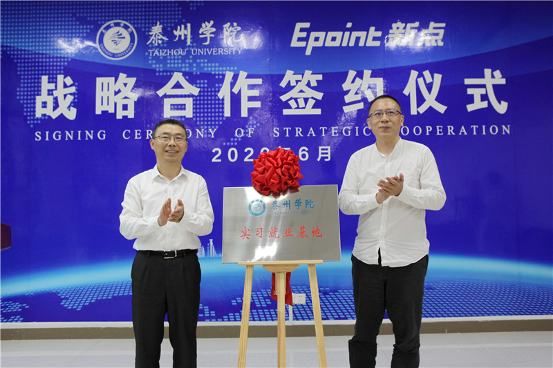 鲁学军和陈俊荣共同为实习就业基地揭牌。