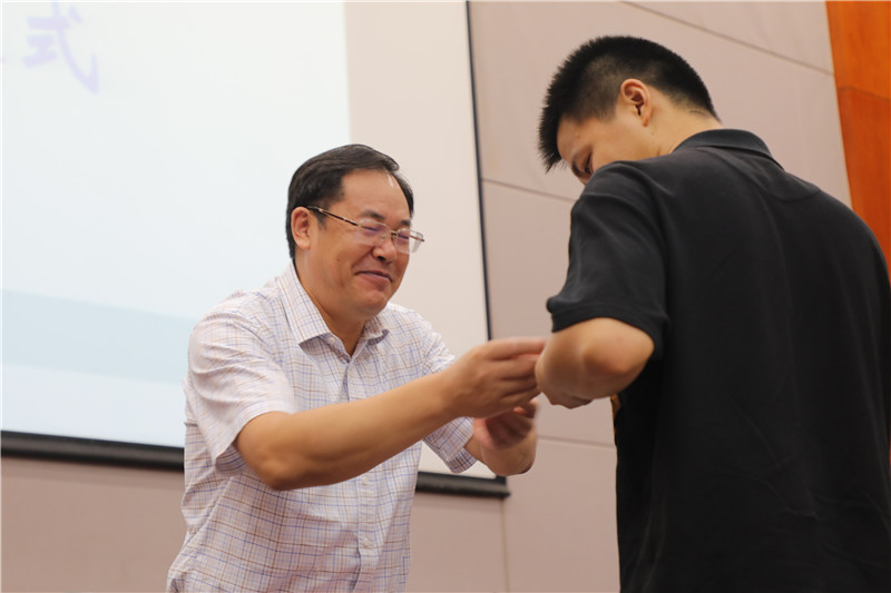 周建超介绍了本次岗前培训的课程安排,要求大家充分认识岗前培训工作的重要性,认真参加培训,加强交流学习,确保培训取得实效。出席仪式的校领导为新教师代表佩戴了校徽。