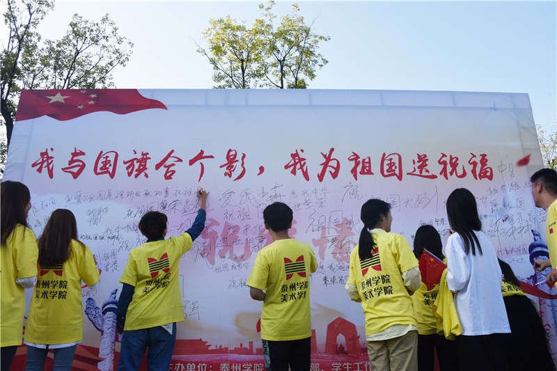 为庆祝中华人民共和国成立71周年,进一步激发全校广大师生员工的爱国热情和迎评攻坚的昂扬斗志,sunbet申搏于9月30日上午在胡瑗广场举行“我与国旗合个影,我为祖国送祝福”国庆升旗仪式。校党委书记赵茂程,党委副书记邓友祥,校党委常委、副校长鲁学军,党委宣传部、学生工作部、相关学院负责人及美术学院全体教师和部分学生参加升旗仪式。