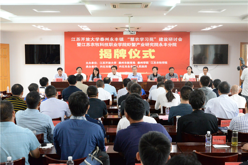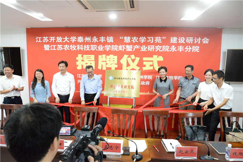 9月29日下午,江苏开放大学永丰“慧农学习苑”建设研讨会暨永丰虾蟹产业研究院揭牌仪式在兴化市永丰镇举行。校党委常委、副校长赵云燕出席会议。江苏开放大学副校长吴忠林、兴化市委副书记葛志晖,江苏农牧科技职业学院、泰州市教育局、兴化市教育局、永丰镇有关领导以及泰州三市四区社区教育中心负责人和sunbet申搏继教院相关人员参加会议。会议由继续教育学院院长李元贵主持。