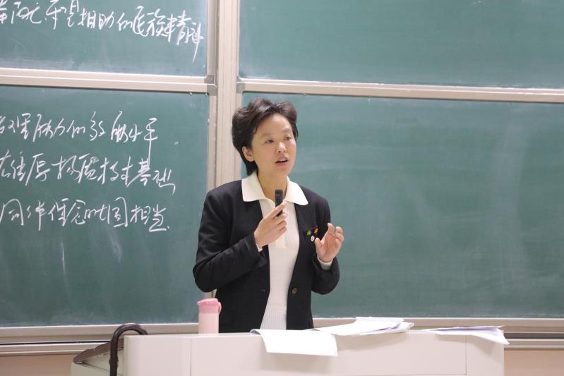课堂教学的第二阶段,由赵云燕结合自身专长为学生做抗疫防疫拓展。赵云燕在授课中对各类疫苗优缺长短、疫苗的研发周期、冬春季节的疫病防护等做了通俗易懂的讲解,并在深入理解“中国答卷”的基础上,和学生进行了交流和互动,鼓励大学生努力学习,增强本领,成长为“有担当”“能担当”的时代新人。