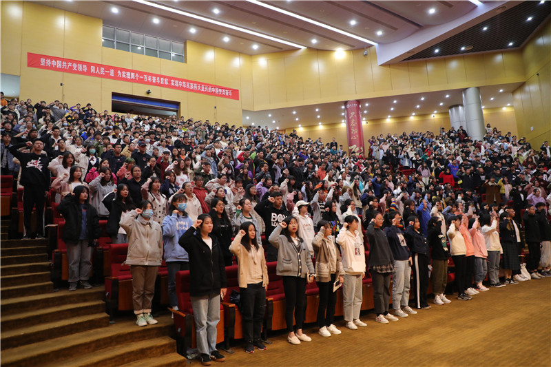 在学生干部、学生党员动员大会上,学生工作部负责人对全校学生就如何做好迎评提出具体要求;校学生会发出迎评倡议,学生代表作迎评表态发言并带领全体与会学生进行迎评集体宣誓。