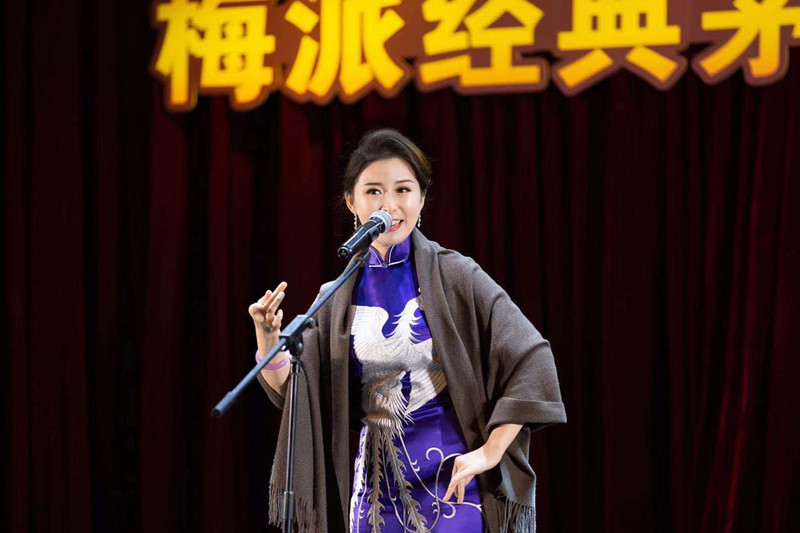 音乐会上,茅华梅老师给大家表演了六折梅派经典片段:《贵妃醉酒》《廉锦枫》《杨门女将》《天女散花》《霸王别姬》《穆桂英挂帅》。茅华梅老师用她极专业的演唱技巧演绎了梅韵六叠:一叠其戏,二叠其艺,三叠其思,四叠其人,五叠其神,六叠其韵。