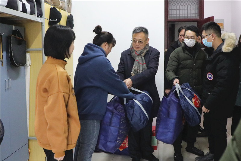 2020年12月31日-2021年1月12日,校党委书记赵茂程,校党委副书记、校长徐向明等全体校领导分别前往联系学院学生宿舍看望家庭经济困难学生。