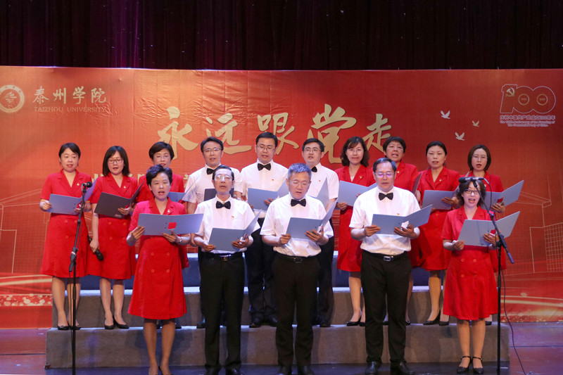 剧场内,歌声飘扬,掌声阵阵。《我们走在大路上》《没有共产党就没有新中国》《映山红》《红旗飘飘》《北京的金山上》《游击队之歌》……一首首耳熟能详的旋律,一句句铿锵有力的歌词,唱出了泰院人心中对党的崇敬与祝福。师生们在动情的歌声中共同追忆往昔峥嵘岁月,共同感悟共产党人追求理想、披荆斩棘的坚强信念和意气风发、斗志昂扬的豪迈气概。(党委宣传部 校工会)