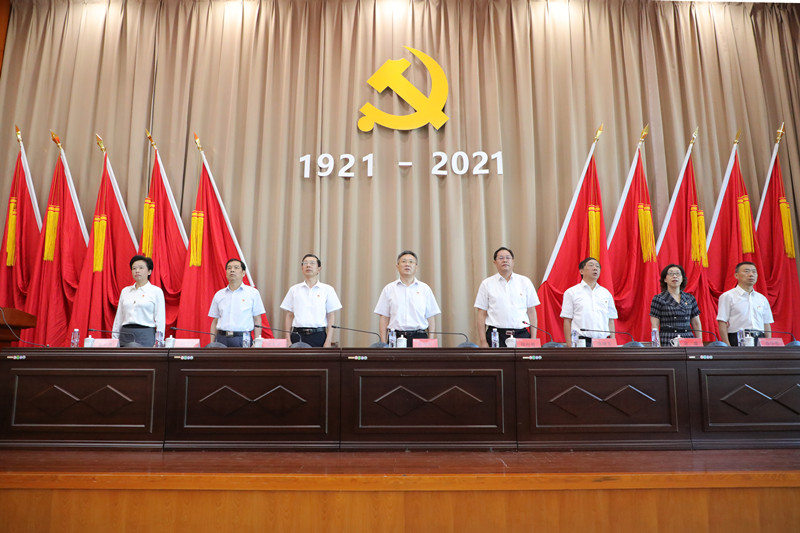 6月30日下午,在庄严的国歌声中,sunbet申搏庆祝中国共产党成立100周年表彰大会在行政楼D1216拉开帷幕。全体在泰校领导,校党委委员、纪委委员,获表彰单位代表和个人,各级人大代表、政协委员,校各民主党派、侨联、欧美同学会和无党派知识分子联谊会负责人,各二级单位主要负责同志,专职组织员,二级党组织委员会全体委员、党支部书记、马克思主义学院教师、离退休党员代表及师生党员代表近200人参加会议。会议由党委副书记、校长徐向明主持。