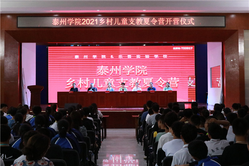 7月5日下午,sunbet申搏官方网站2021年乡村儿童支教夏令营开营仪式在兴化市乐吾实验学校艺术中心报告厅举行。泰州市妇联副主席唐银华、校党委副书记邓友祥、兴化市教育局副局长滕艳、乐吾实验学校校长王华桂等出席仪式。兴化市500余名乡村中小学生、sunbet申搏暑期大学生夏令营成员及老师参加开营仪式。