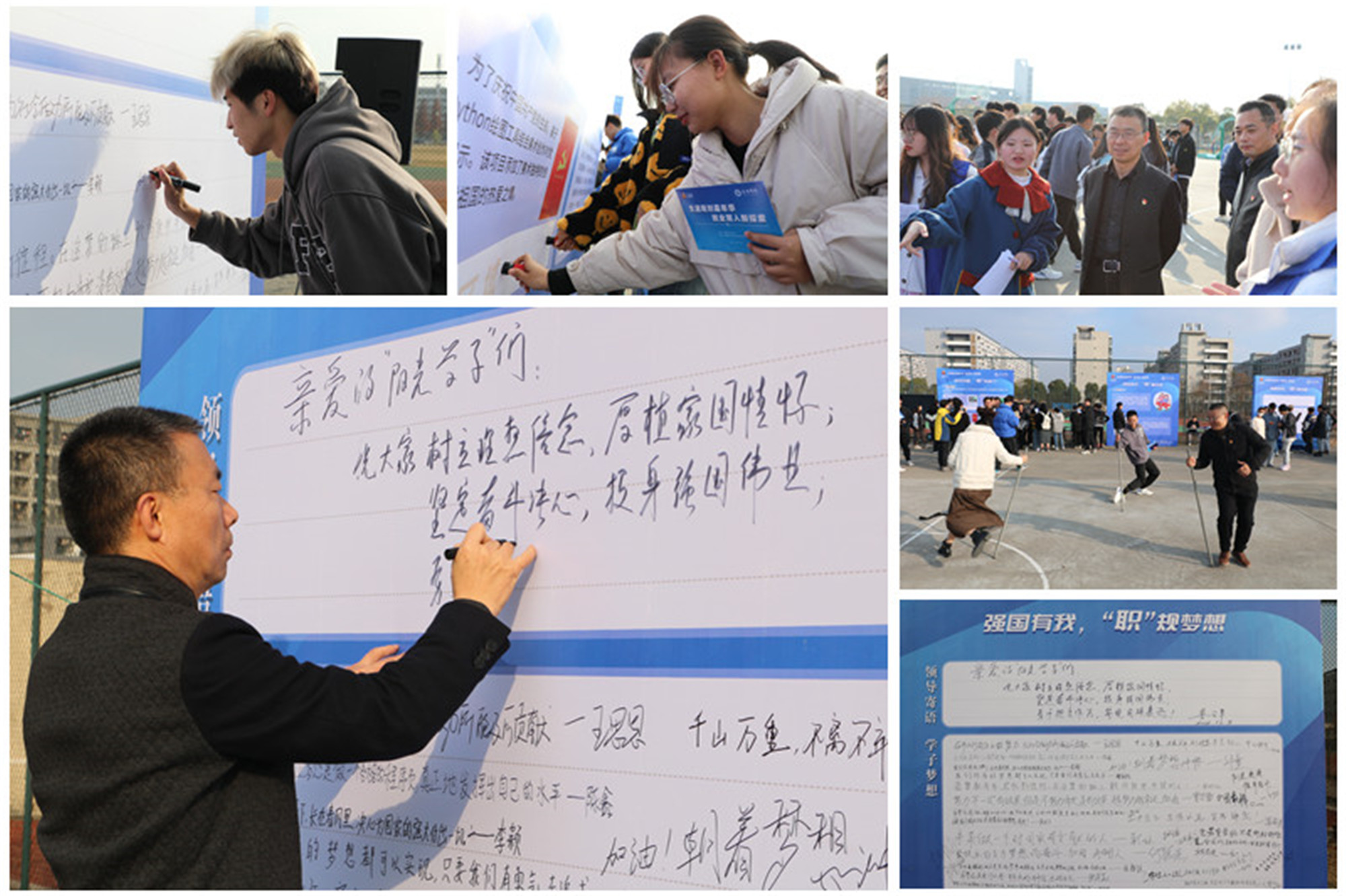 鲁学军在梦想留言板上写下青春寄语,勉励sunbet申搏的“阳光学子”们树牢理想信念,厚植家国情怀;坚定奋斗决心,投身强国伟业;勇于担当作为,实现民族复兴。他与参与活动的学生亲切交谈,要求大家学好生涯规划的理论,设定好科学合理的目标,努力提升自我技能。活动现场,他还将《sunbet申搏官方网站大学生基层就业典型事迹》赠送给学生,号召大家以身边的同学为榜样,到基层和国家需要的地方去建功立业,让青春之花绽放在祖国最需要的地方。
