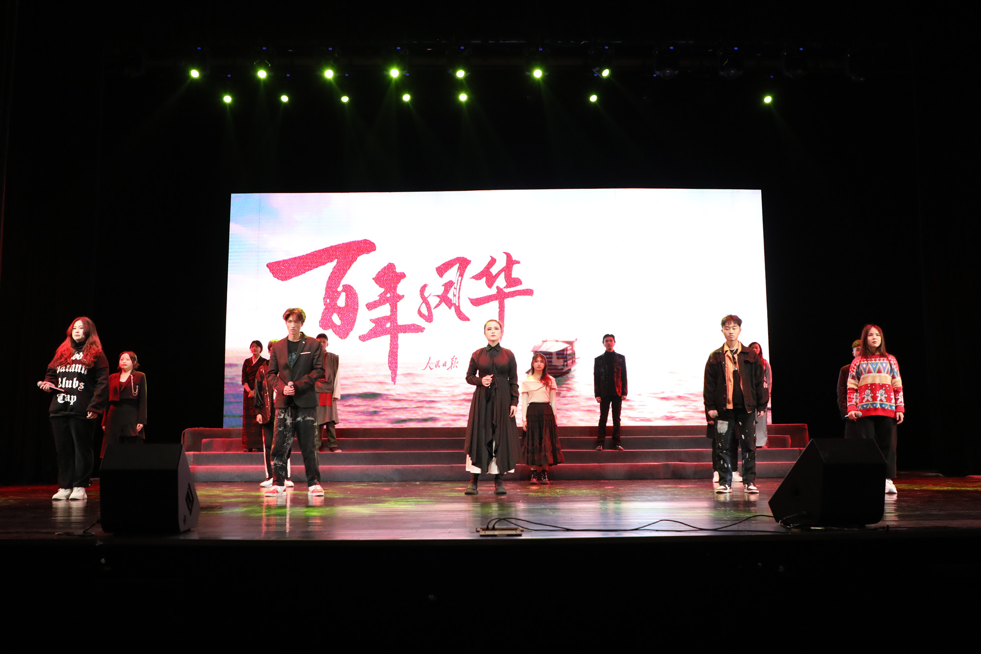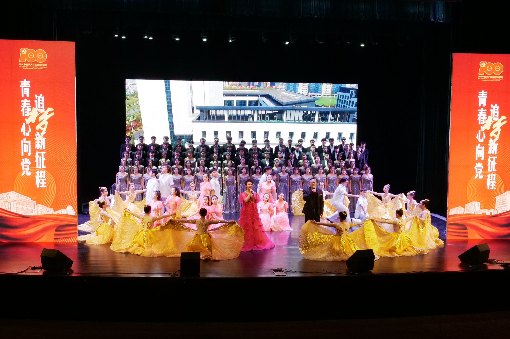 晚会在音乐学院的大合唱《没有共产党就没有新中国》中拉开序幕。经济与管理学院的舞蹈《东方破晓》、人文学院的朗诵《觉醒青春》、教育科学学院的舞蹈《沁园春·雪》、大学生艺术团流行乐团的歌曲串烧《错位时空》以及音乐学院的舞蹈《碇步桥水清悠悠》等艺术节获奖节目登台亮相。晚会在校艺术团师生的歌舞《sunbet申搏官方网站之歌》中画上了圆满的句号。