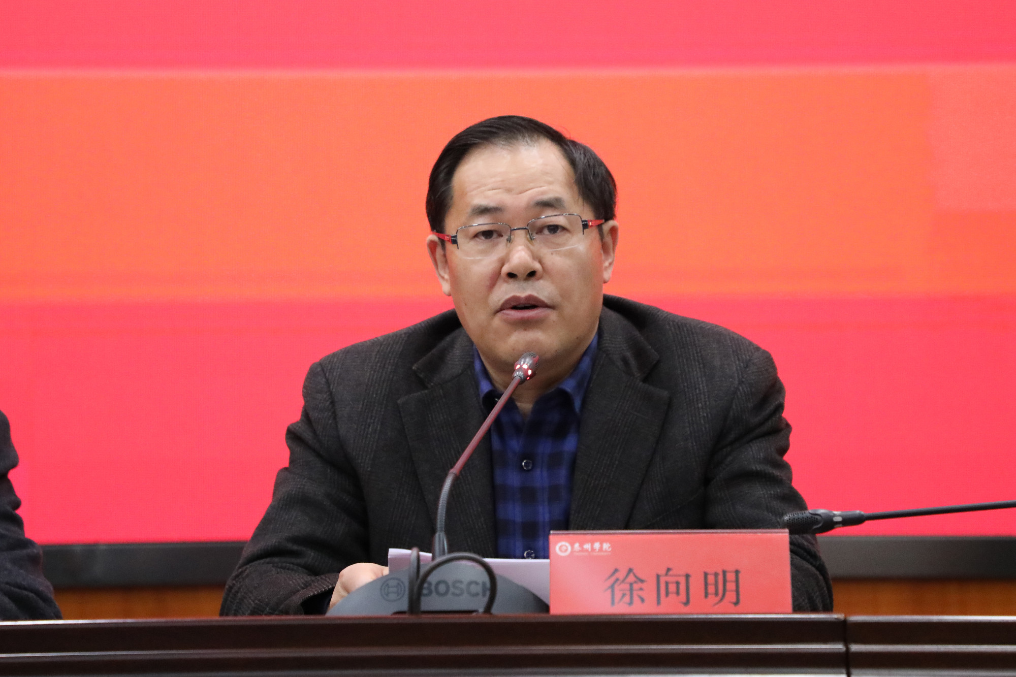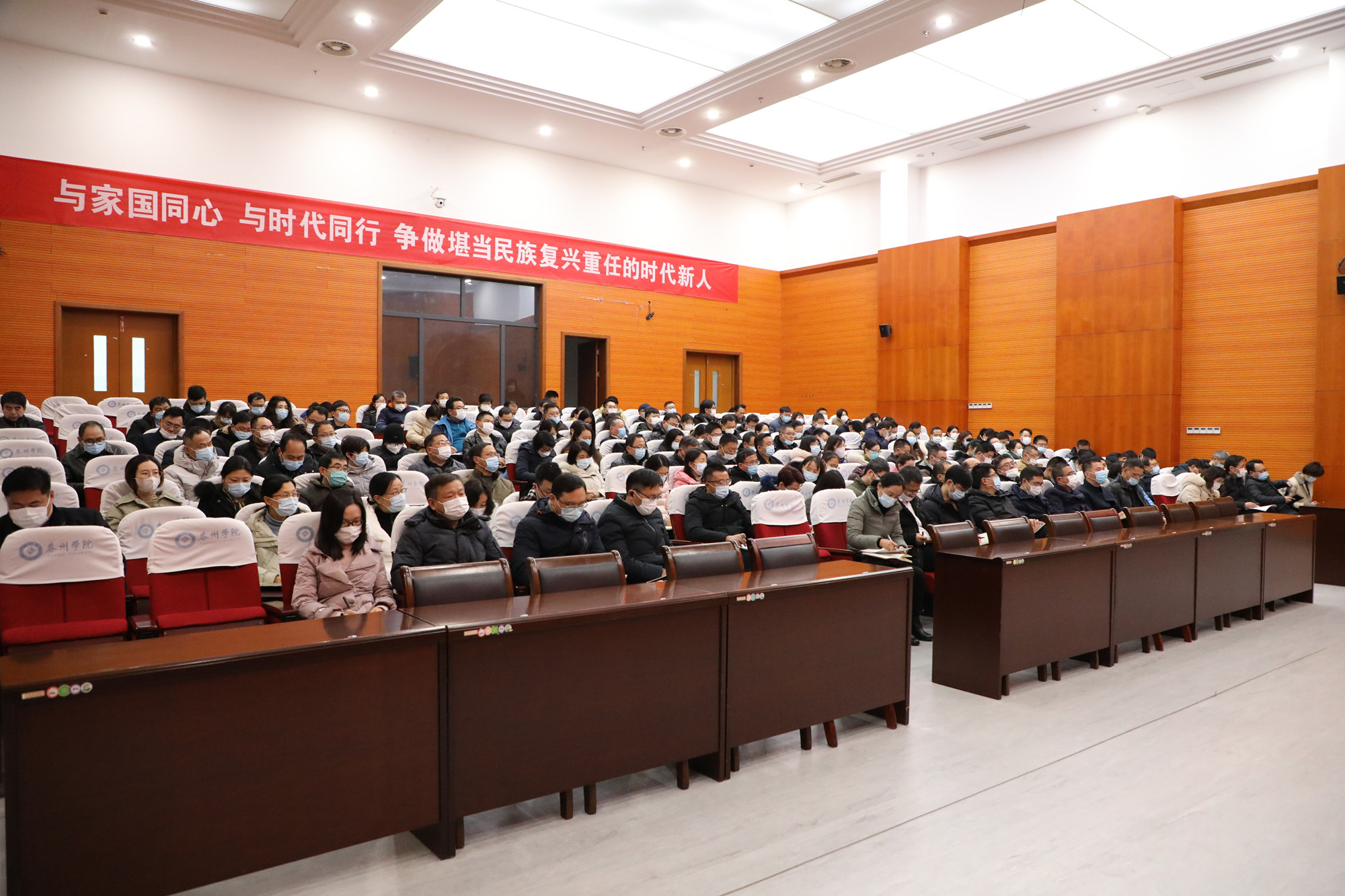 党委副书记、校长徐向明总结了2021年度学校工作,肯定了学校在巡视整改、评估整改、规划编制、专业建设等方面取得的明显成绩,并代表学校向一年来勤勉敬业、履职尽责的每一位泰院人致以衷心的感谢。他指出,2022年是学校的“质量提升年”,全校上下要将“十四五”规划落地落实,未雨绸缪,真抓实干,着力抓好提升党的建设质量、提升学科建设质量、提升专业建设质量、提升人才培养质量、提升现代大学治理质量五个关键要素,真正实现学校事业高质量发展。