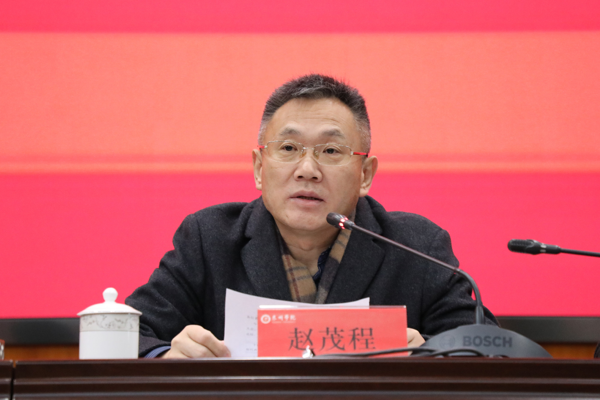 赵茂程以《加强政治历练,勇担时代使命,努力成为推动学校事业发展的生力军》为题,对科级干部聘任工作进行了总结,对新聘任的科级干部提出了要求。赵茂程指出,科级干部是学校干部队伍建设的重要基础,科级干部队伍的综合素质、能力活力,对学校在新时代、新形势下打造和建设一支高素质的管理干部队伍,有着非常重要的意义。他希望科级干部要坚定理想信念,加强政治历练;坚持学思践悟,提高知识才干;直面压力困难,敢于担当作为,以过硬的政治素质、优秀的专业能力和充沛的青春活力,为实现有特色高水平应用型本科高校的美好蓝图作出自己应有的贡献。