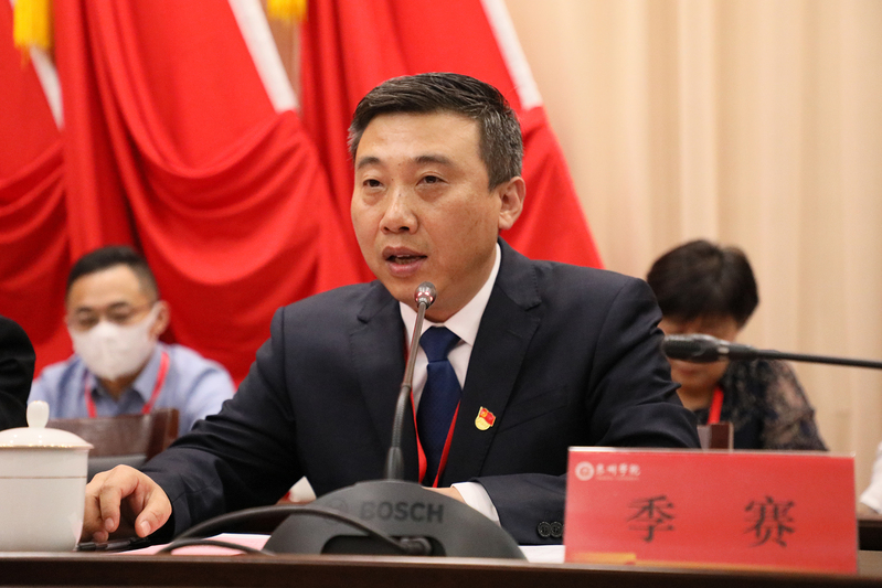 党委副书记、校长季赛主持闭幕式。大会一致通过了《中国共产党sunbet申搏官方网站第三次党员代表大会关于党委工作报告的决议》。决议充分肯定了中共sunbet申搏官方网站第二届委员会的工作,并指出,未来五年是学校通过本科教育教学审核评估和相关专业认证、提升应用型人才培养质量的决战期,是打造教师教育特色、提升服务区域贡献力的窗口期,也是培育硕士点、提升办学水平的积淀期。全校上下要锚定发展目标,坚持“理念为先、改革为魂、队伍为要、质量为本、特色为核、民生为基”的发展战略,完成八个方面主要任务,推动学校事业高质量发展。在新一届党委的领导下,以本次党代会为新起点,凝心聚力、锐意进取,共同谱写学校事业发展的新篇章,为建设特色鲜明的高水平应用型本科高校而努力奋斗!