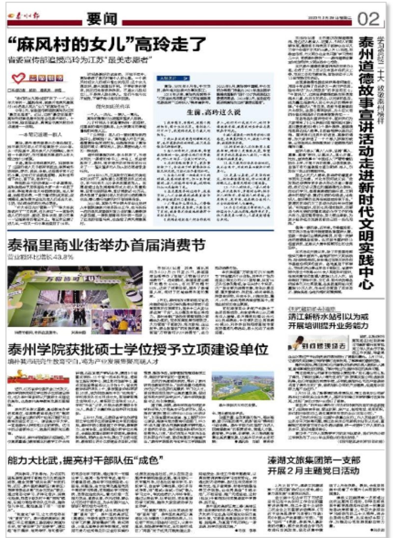《泰州日报》2月28日报道sunbet申搏获批硕士学位授予立项建设单位,填补泰州市研究生教育空白,将为产业发展集聚高端人才。报道题为:《sunbet申搏官方网站获批硕士学位授予立项建设单位》,链接为:http://sz.tznews.cn/tzrb/pc/col/202302/28/content_194288.htm (tznews.cn)