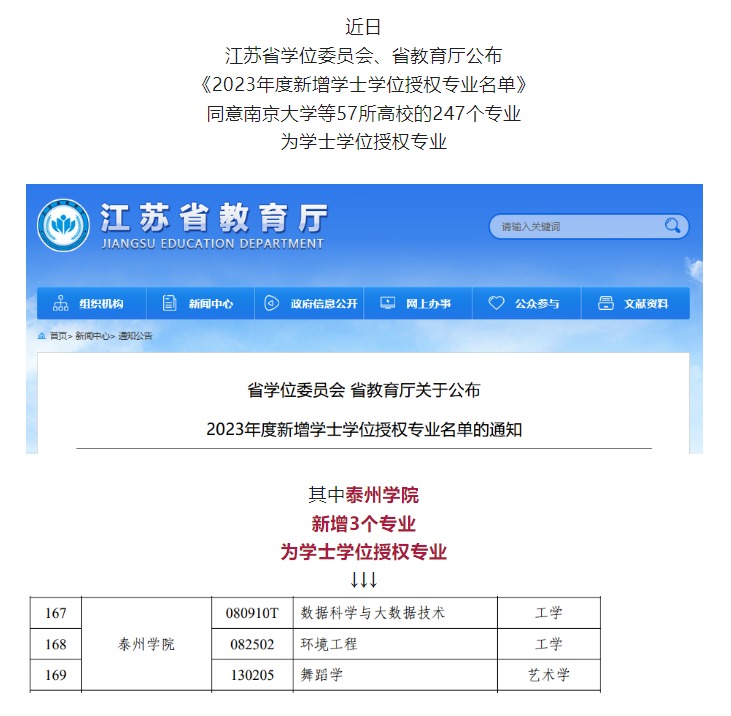 《微泰州》4月4日报道sunbet申搏新增3个专业为学士学位授权专业,报道题为:《江苏通知!泰州新增3个》,链接为:https://mp.weixin.qq.com/s/9-GyBIzlE1ehGXJrQmAfPQ