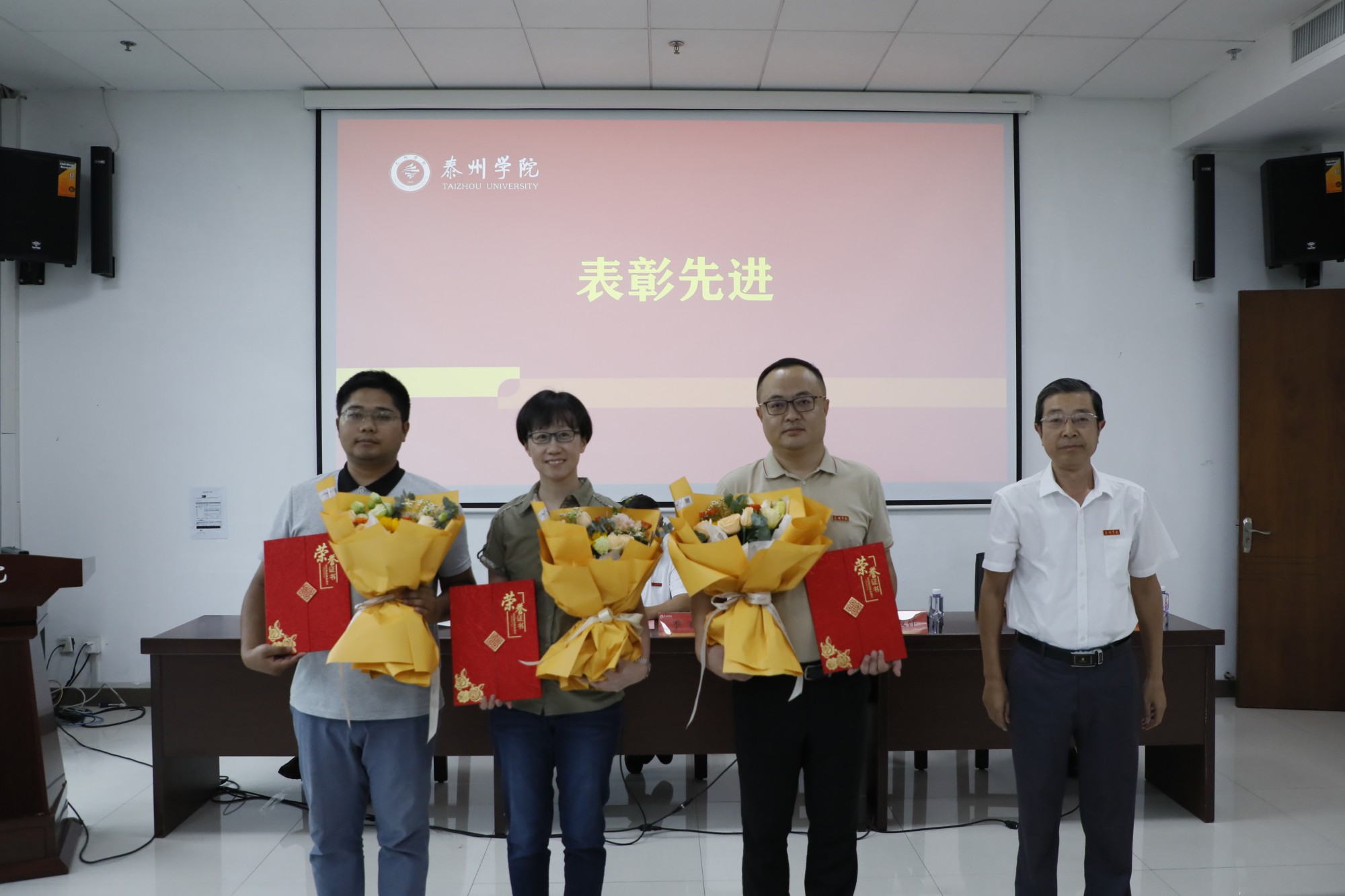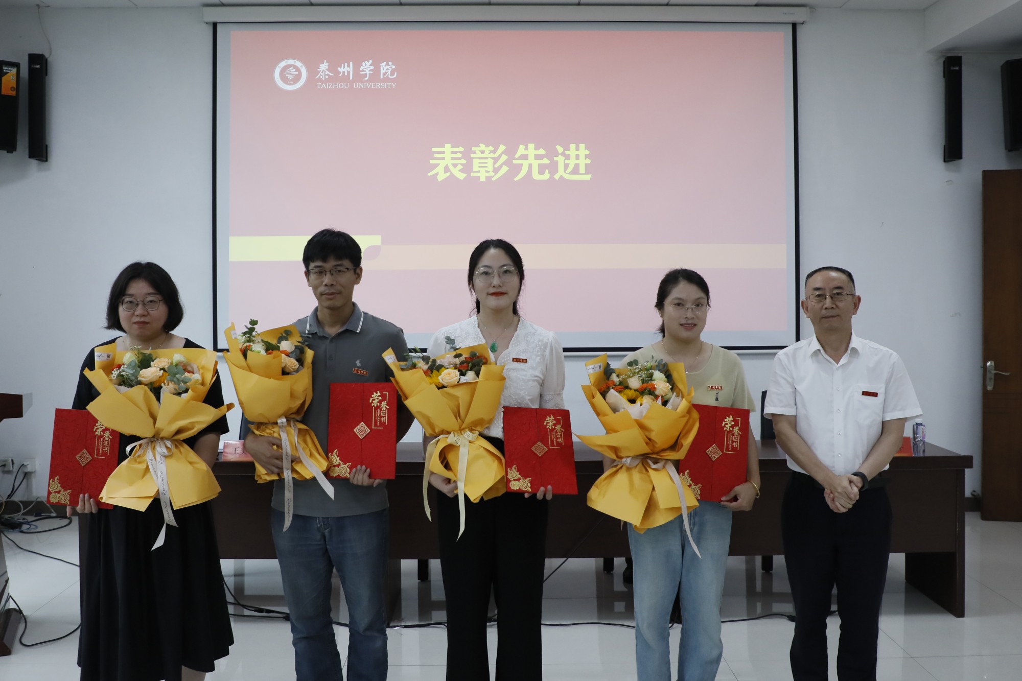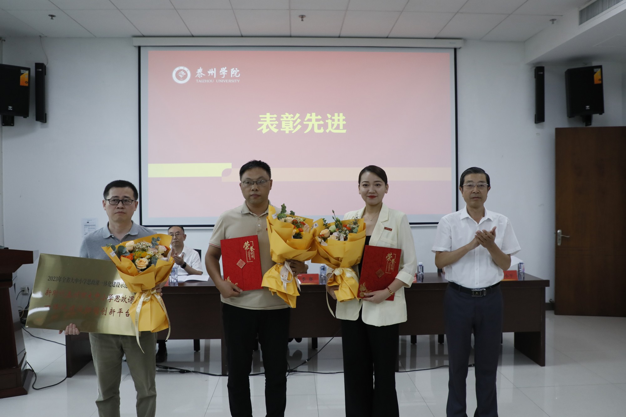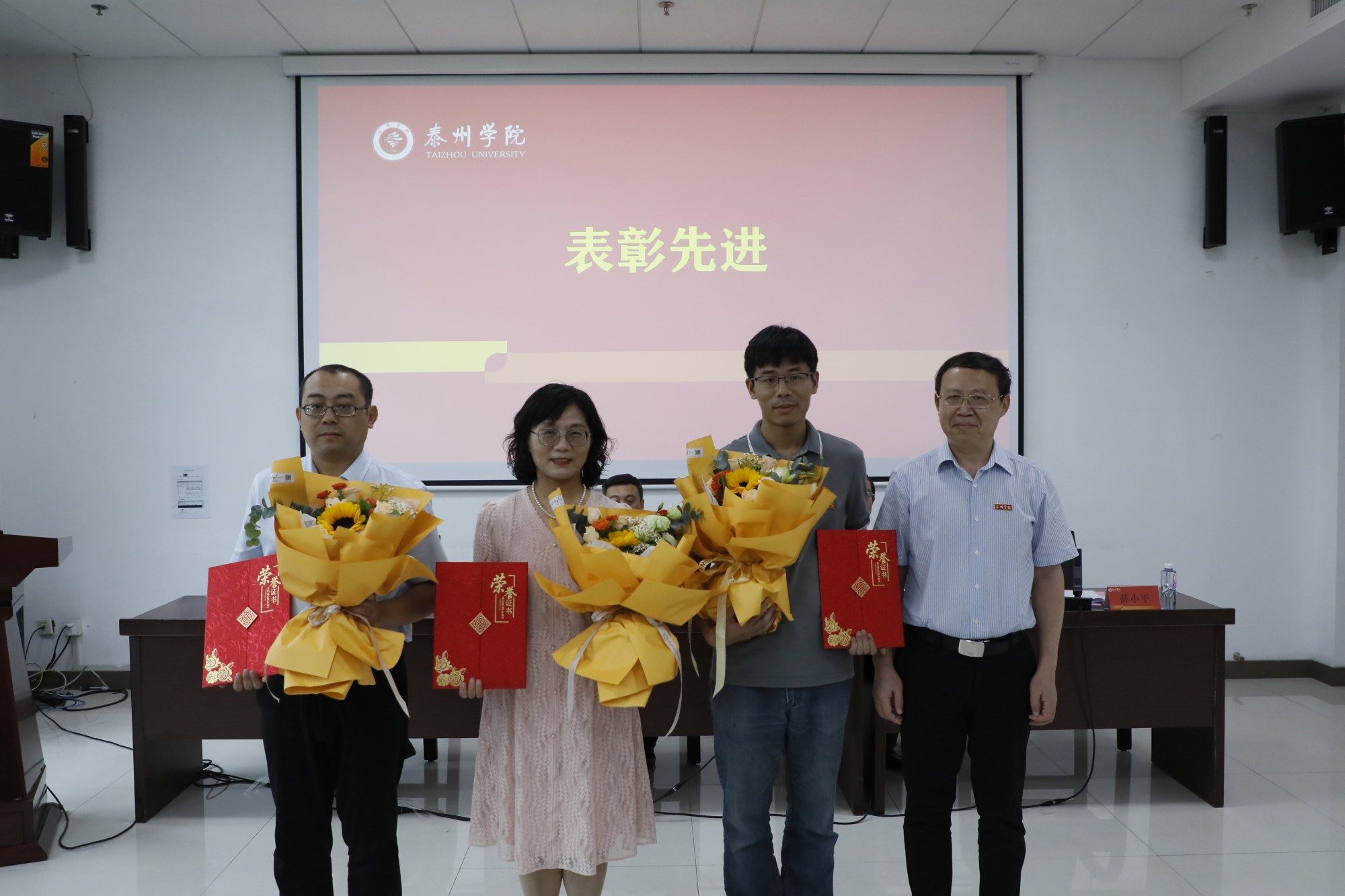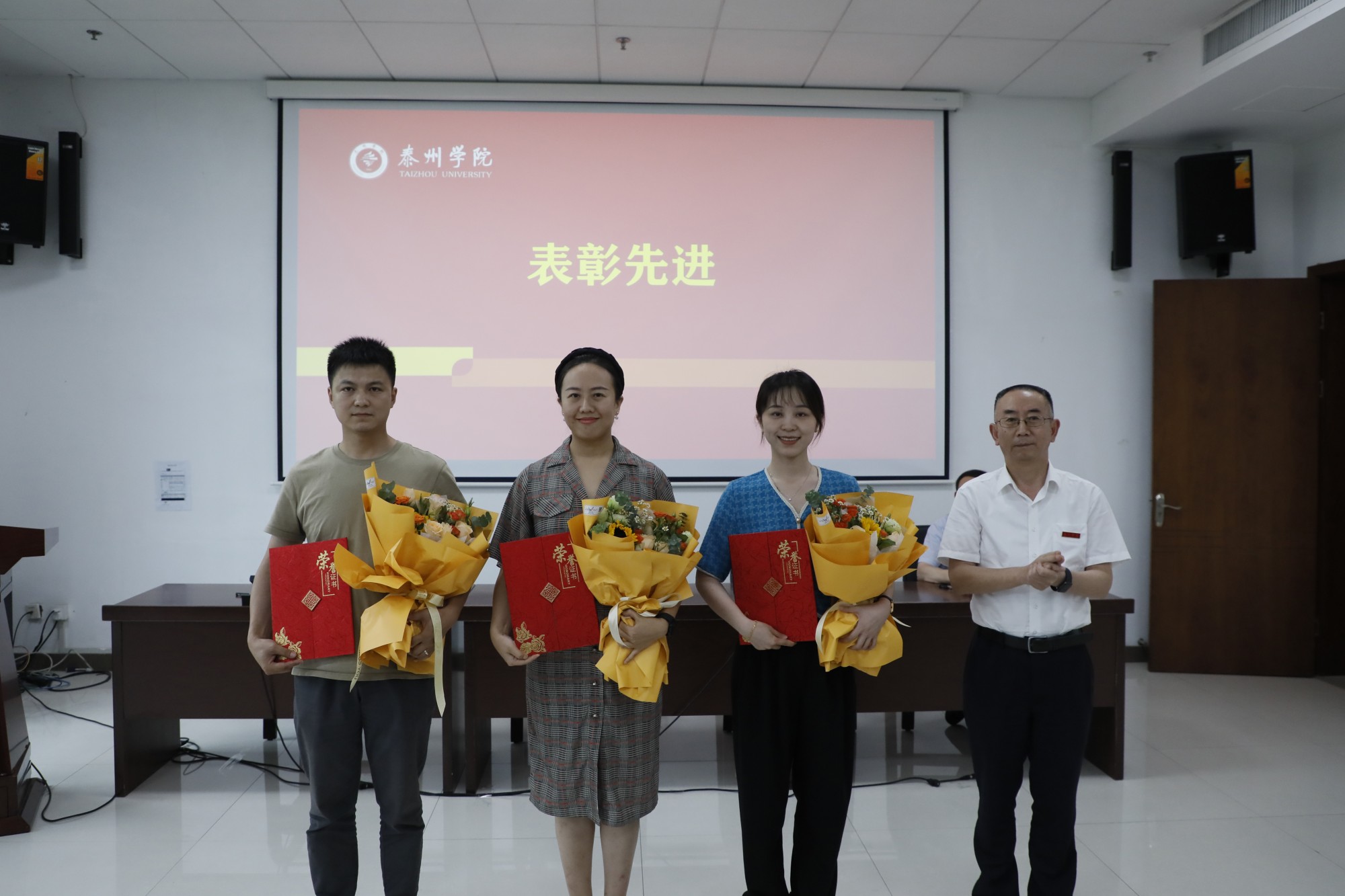 会议表彰了国家级一流课程、国家自然科学基金项目、省哲学社会科学优秀成果奖等省部级以上项目成果的获得者以及泰州市荣誉称号的获奖者。在新教师入职宣誓仪式上,国家级一流本科课程负责人任向民教授带领29名新入职教师庄严宣誓。“国家自然科学青年基金项目”获得者李慧、“江苏省哲学社会科学优秀成果奖”二等奖获得者杨东升、泰州市第四批“春蚕奖”获得者许沪霞以及新进教师杨燕昭等四名新老教师代表进行交流发言。