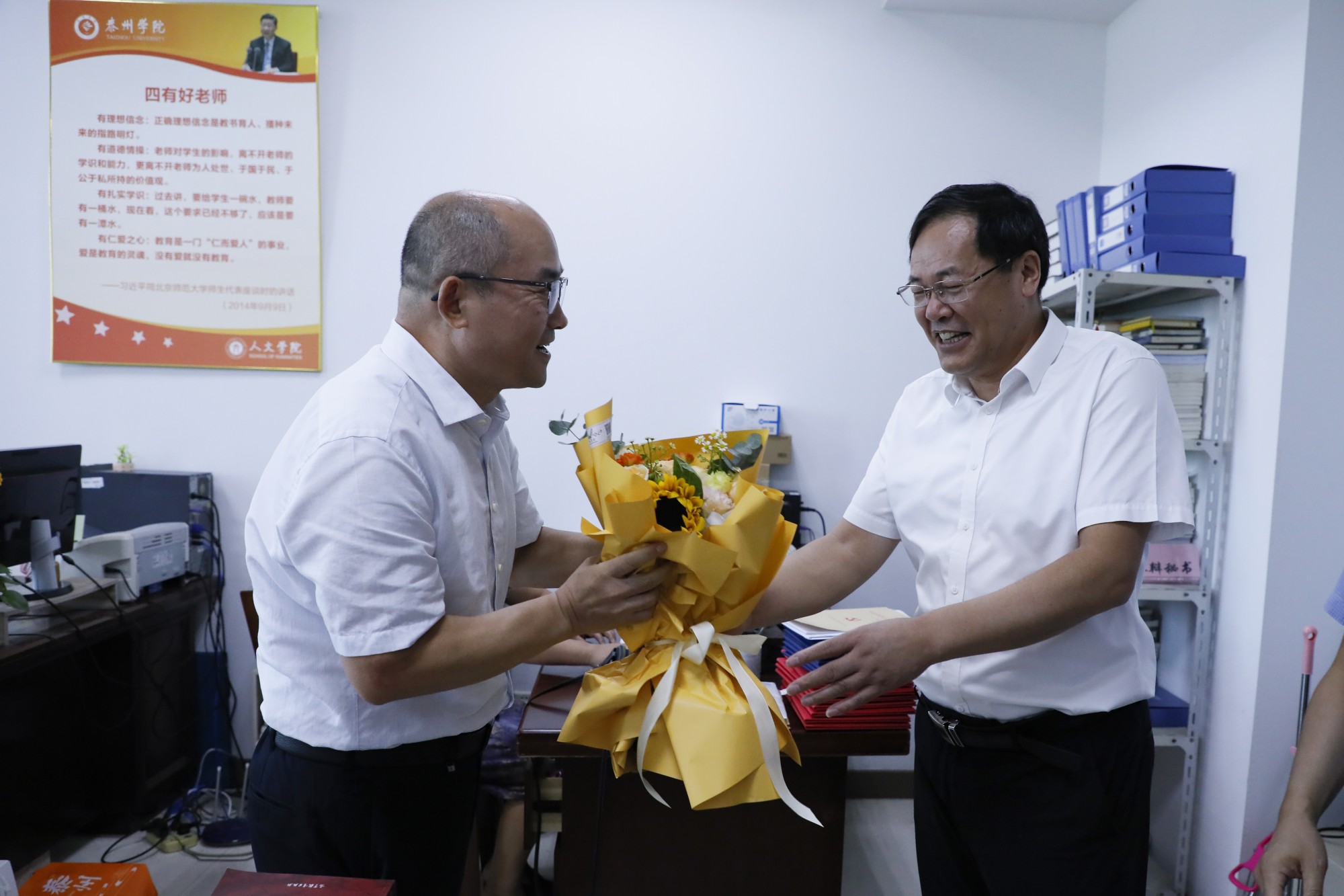 徐向明深入各学院看望慰问教师,代表学校感谢他们为学校建设所做出的贡献并祝他们教师节快乐,同时鼓励大家不忘初心、牢记使命,为推动学校高质量发展,为把学校建成特色鲜明的高水平应用型本科高校做出更大的贡献。