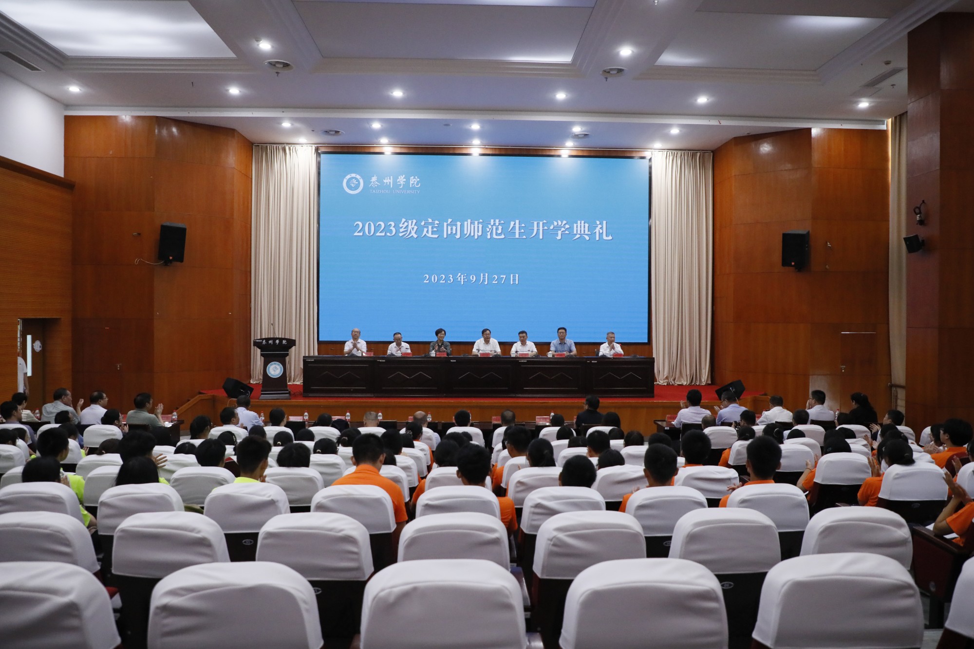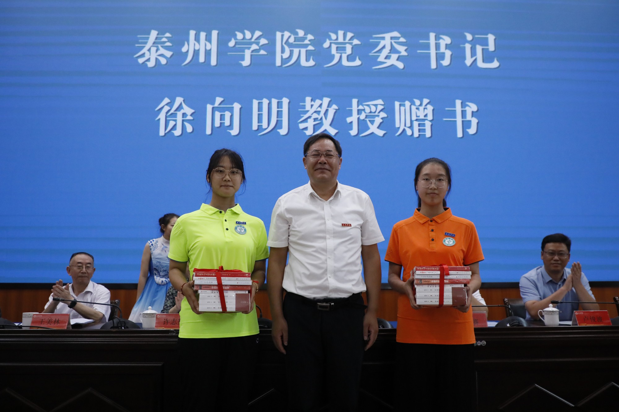 会上,徐向明向定向师范生代表赠书,全体定向师范生进行了庄严的入学宣誓。泰州市教育局副局长许志勤、宿迁市教育局四级调研员卢俊波分别讲话。教师代表朱以财、定向师范生代表孙煜杰分别发言。