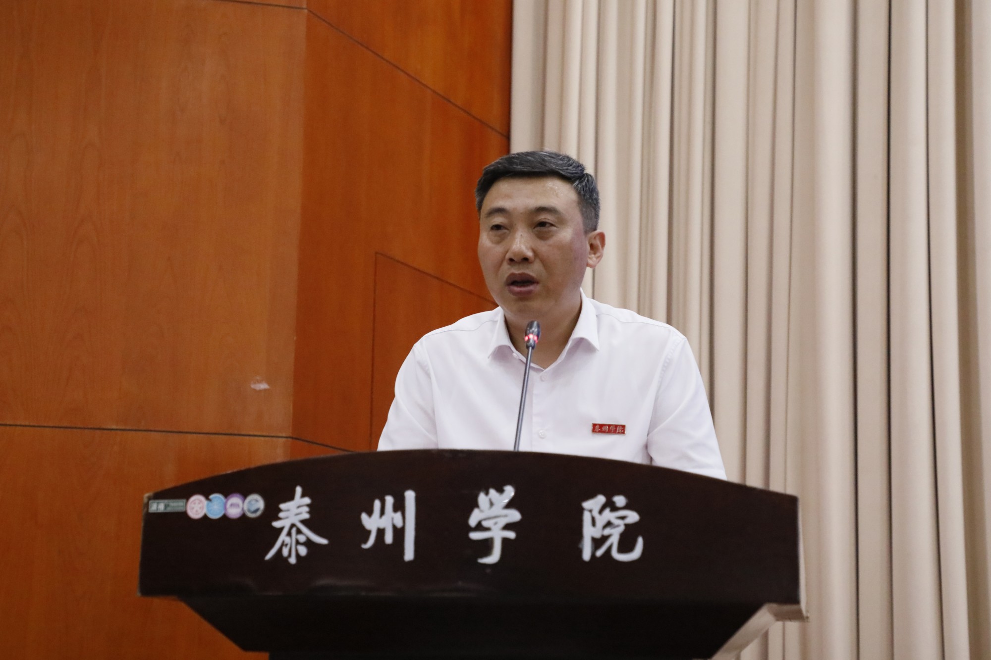 季赛以《浸润师范教育底色,谱写泰院青春乐章》为题讲话。他代表全校师生员工,欢迎93名新同学加入未来教师预备队,向专程来校参加活动的泰州市、宿迁市各位教育界领导、同仁表示热烈的欢迎。季赛对定向师范生提出期望,一是学习教育家精神,坚定教育初心,为思想铸魂;二是胸怀教育强国之志,坚持明体达用,为梦想筑路;三是立足提升教书育人本领,强化知行合一,为志向储能。