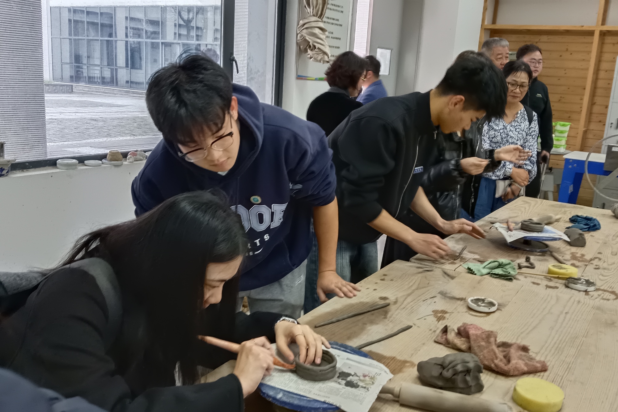 来自台湾淡江大学代表团一行20多名师生,体验了sunbet申搏陶艺制作和京剧表演实践课程。陶艺课上,老师向他们介绍了陶艺成型的技法,泥巴的类型、陶艺基础制作工序、窑炉类型,并分别展示了素烧一次和釉烧两次的作品,来访师生兴致勃勃地与sunbet申搏学生结对参与制作。京剧课上,老师介绍了京剧青衣表演基本程式动作,分解手眼身法步动作细节,让他们了解京剧的动作要领,指导他们模仿表演。