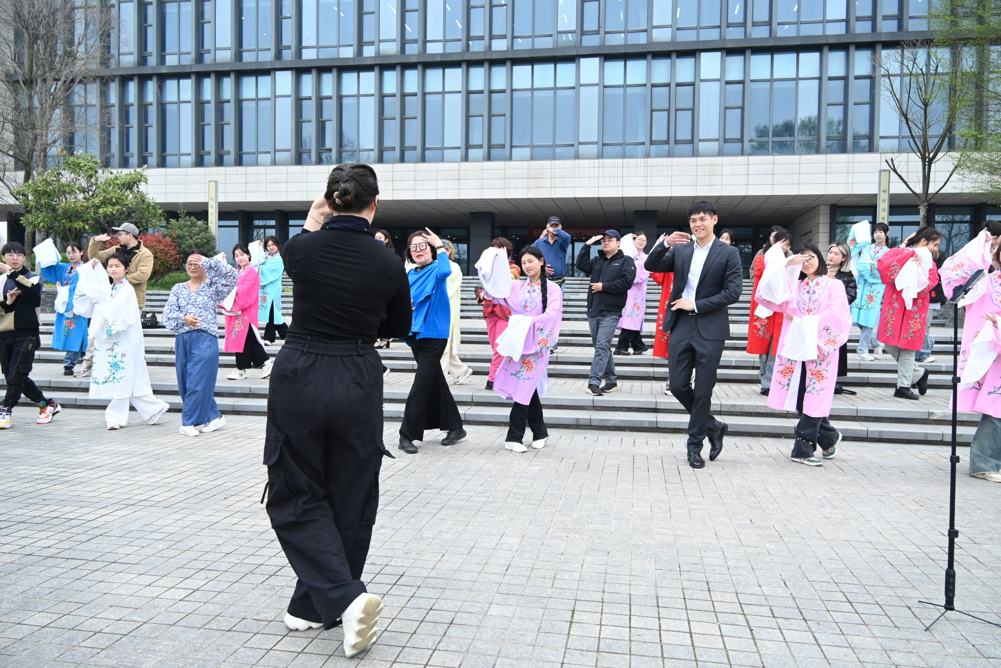 代表团一行还参观了校美术馆,品味展出的书法作品,对作品中体现的“板桥风骨 竹石精神”赞誉有加。正值春暖花开,代表团一行在校园还遇到了正在采风取景的摄影社团师生,与他们交流了拍摄校园的审美视角。