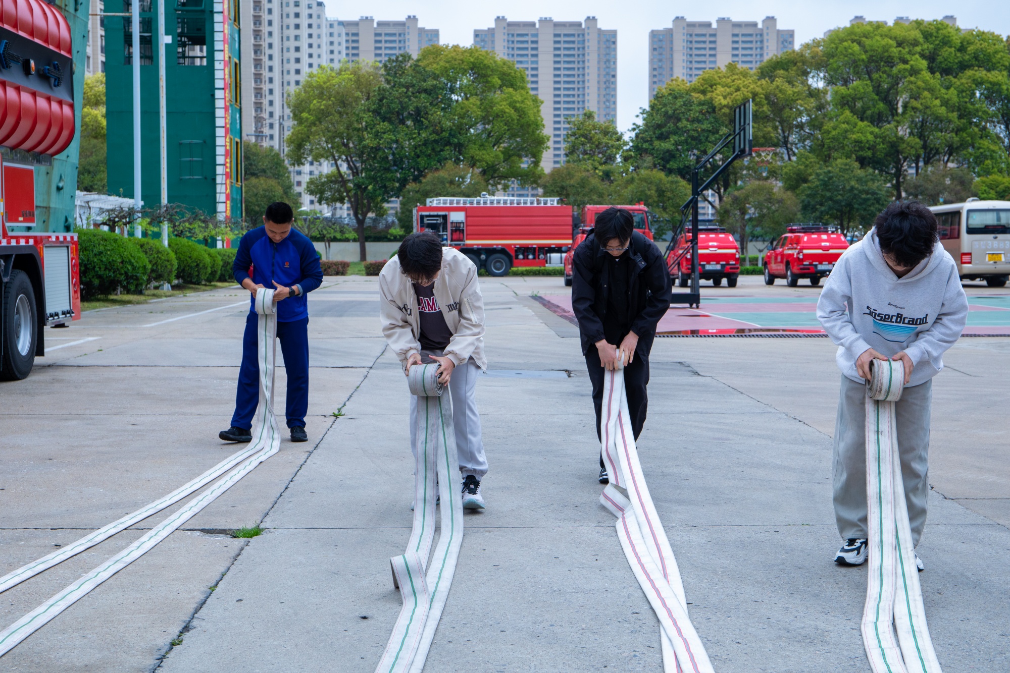 在消防员的指导下,同学们还穿上灭火战斗服,模拟消防实战,切身体会消防救援的艰辛与不易。同学们纷纷表示要积极配合校园消防安全管理,在实验室操作、电动车使用、宿舍生活等与消防安全相关方面更加严格要求自己,为构建平安校园贡献一份力量。
