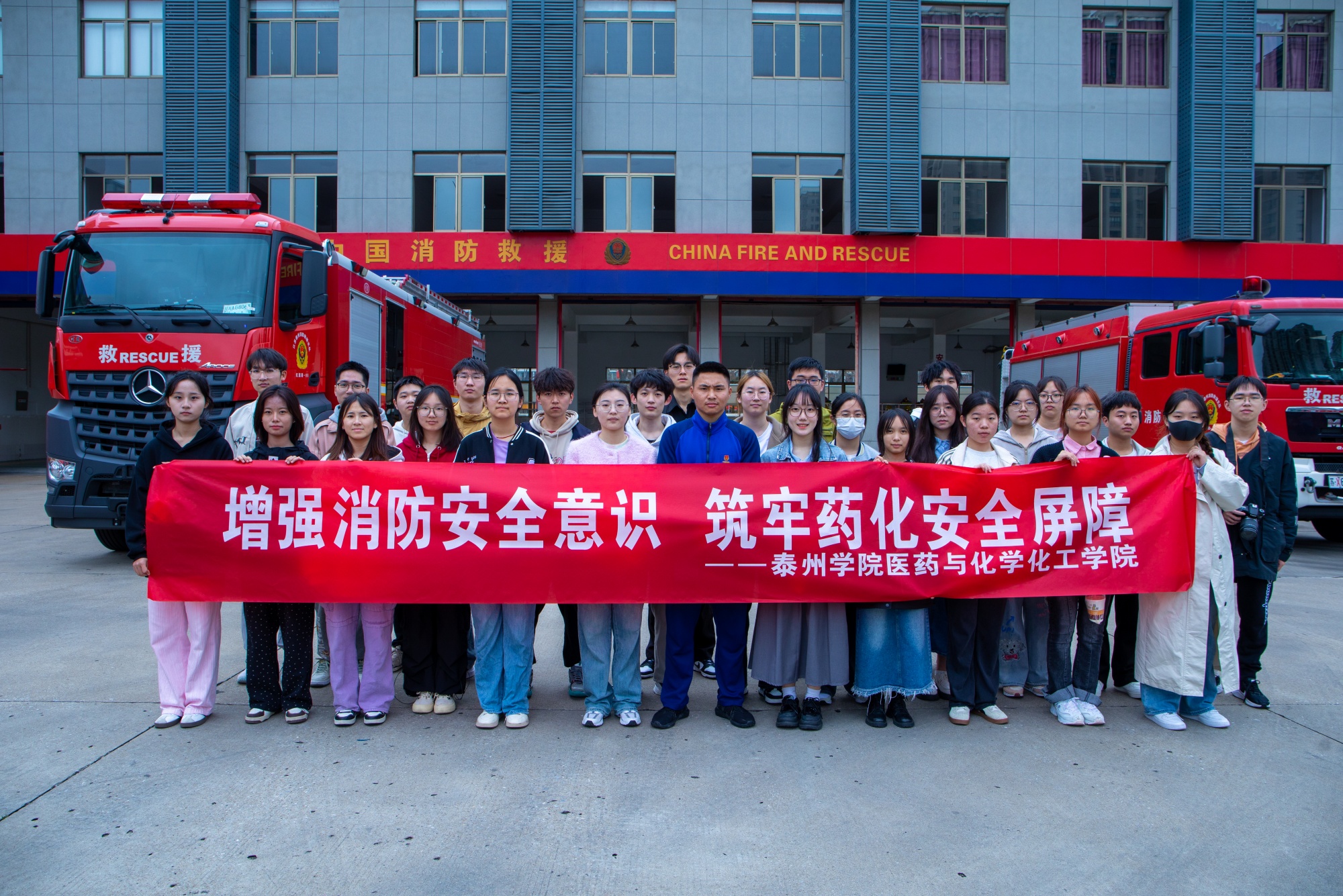 为提高学生消防安全意识和自防自救能力,深入开展消防安全宣传和教育工作,4月13日上午,医药与化学化工学院以“增强消防安全意识,筑牢药化安全屏障”为主题,组织师生赴泰州市消防救援支队参观学习。辅导员、班级治保委员、实验室科研助理等师生代表参加本次活动。