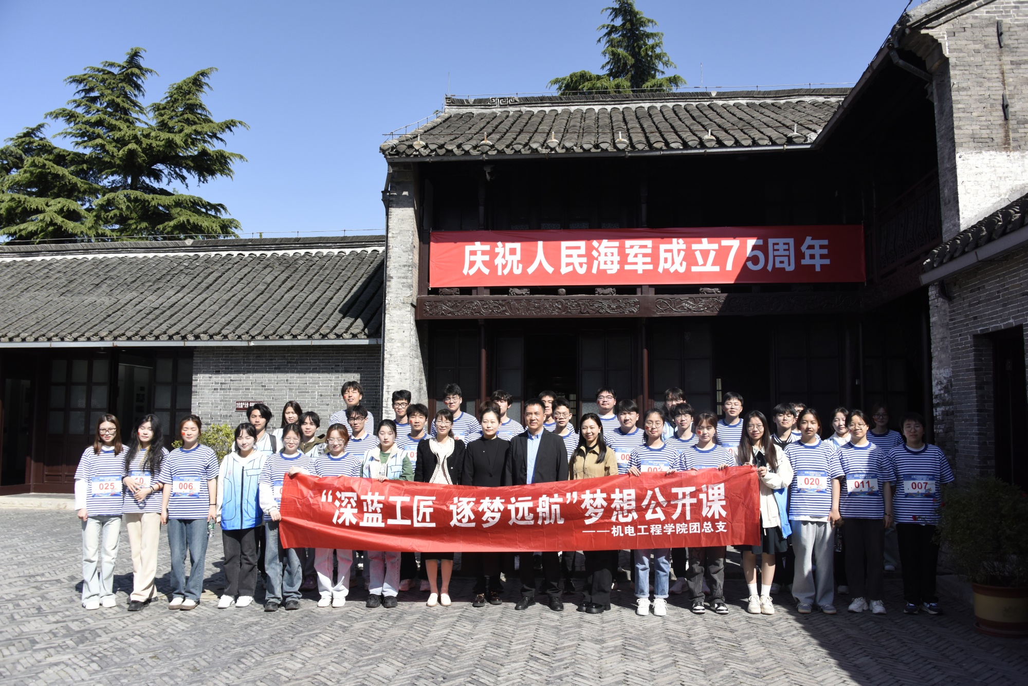 为庆祝中国人民解放军海军成立75周年,筑牢理想信念根基,点燃爱国强国梦想,4月18日,机电工程学院团总支联合中国人民解放军海军诞生地纪念馆开展“深蓝工匠 逐梦远航”梦想公开课活动。机电工程学院、数理学院学生代表参加此次活动。